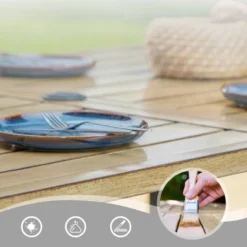 7pc Patio Dining Set With Wood Grain Tabletop & Metal Padded Arm Chairs – Captiva Designs
