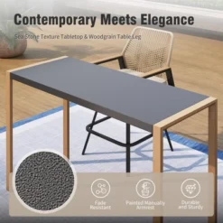Captiva Designs 3pc Outdoor Patio Dining Steel Table & Gray Wood-look Arm Textilene Sling Chairs