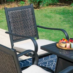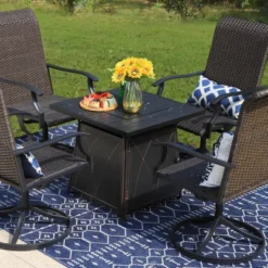 5pc Patio Dining Set With Steel Fire Pit Table & 360 Swivel Chairs – Captiva Designs