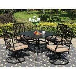 7pc Outdoor Dining Set With 37″ Table & Swivel Arm Chairs – Captiva Designs