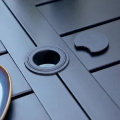 7pc Outdoor Dining Set With Faux Wood Table With Umbrella Hole – Captiva Designs