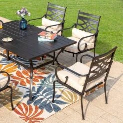 7pc Outdoor Dining Set With Chairs & Metal Table With Umbrella Hole – Captiva Designs
