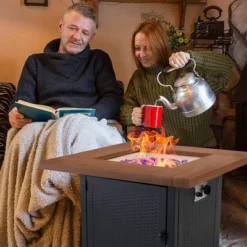 5pc Patio Dining Set With 34″ Square Fire Pit Table & Swivel Arm Chairs – Captiva Designs