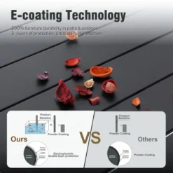 Captiva Designs 9pc Spacious Slat-top Square Metal Table & Rattan Metal Chairs With Thick Cushions