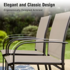 Captiva Designs 9pc Patio Slat-top Metal Dining Table & Padded Textilene Swivel Chairs