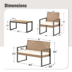 Captiva Designs 4PC Outdoor Wicker Patio Conversation Set With Coffee Table For Poolside, Backyard